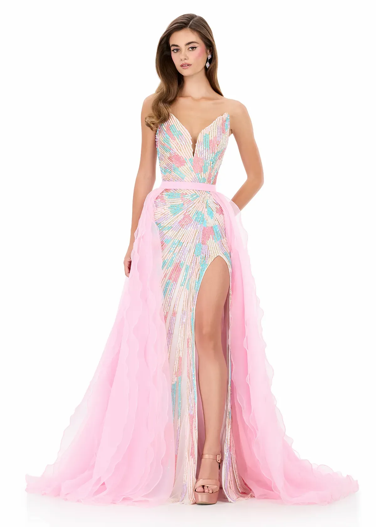 ASHLEYlauren Style 12296 is a flowing crinkle organza overskirt designed to add instant volume and movement to any short or fitted look. The lightweight texture creates soft, rippled waves that elevate gowns, jumpsuits, and cocktail dresses with ease. Overskirt Only